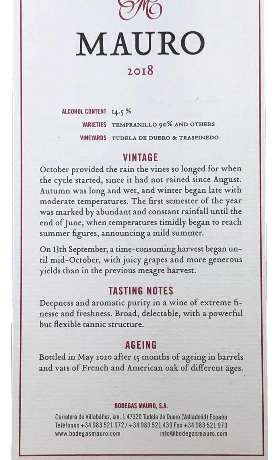 Weinmacher des Mauro 2019 ist Mariano Garcia, der ehemalige Weinmacher von Vega Sicilia.