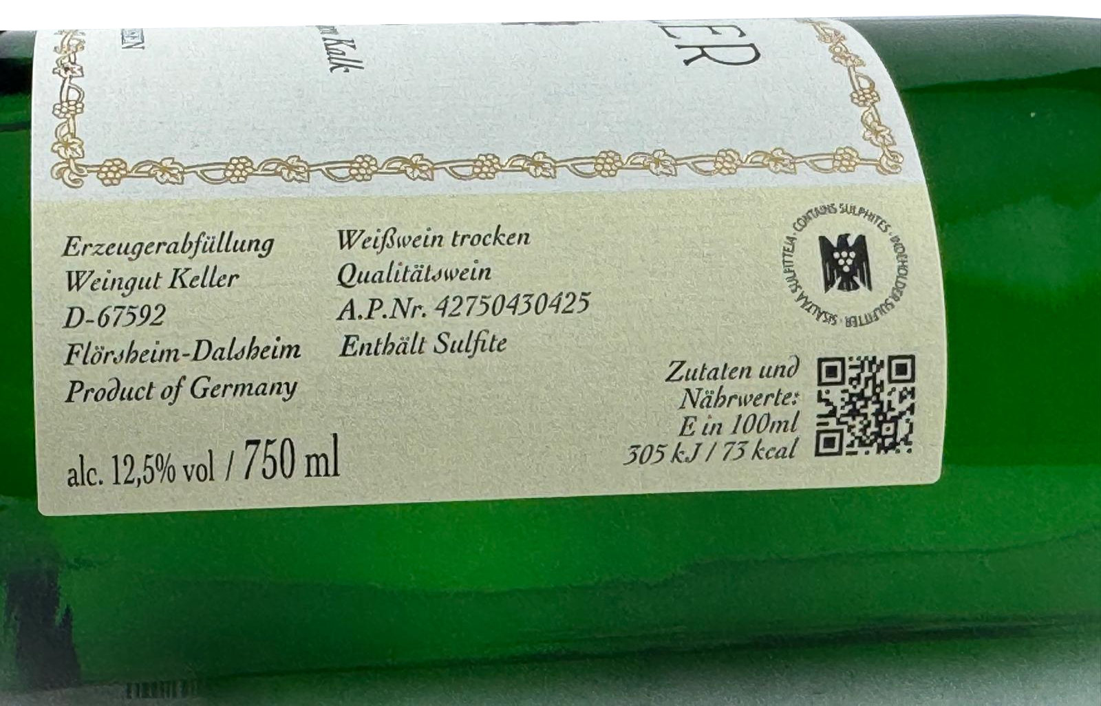 Hinweis: Die Abbildungen zeigen den hier angebotenen Weißwein 2024 Cuvée 'vom muscheligen Kalk' trocken, Weingut Keller, Rheinhessen.