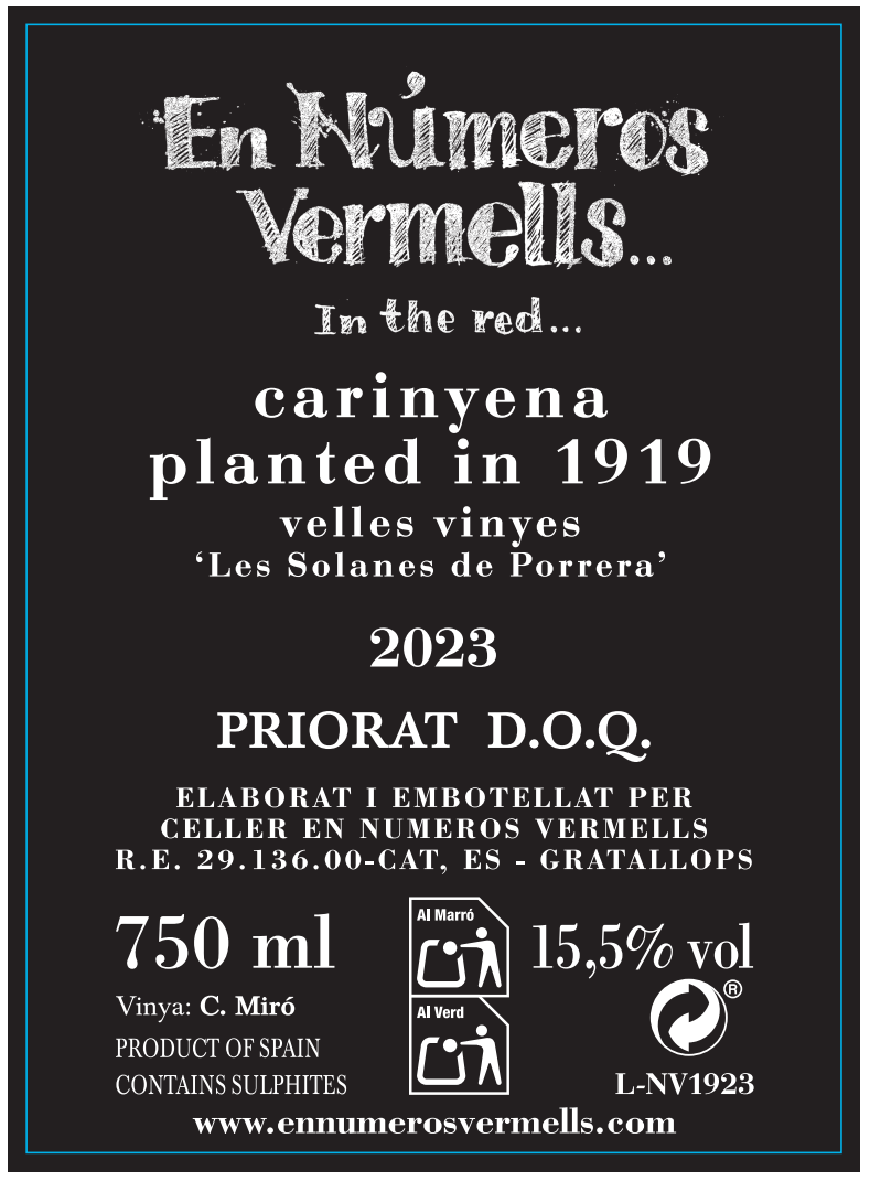 Spanischer Rotwein En Números Vermells Carinyena (1919) 2023 von Silvia Puig aus der D.O.Ca. Priorat.