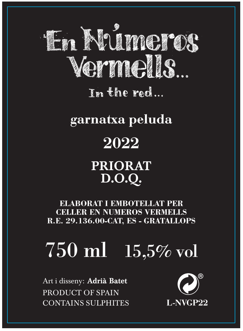 Der En Números Vermells Garnatxa Peluda 2022 ist ein reinsortiger Rotwein aus der Rebsorte Garnacha Peluda.