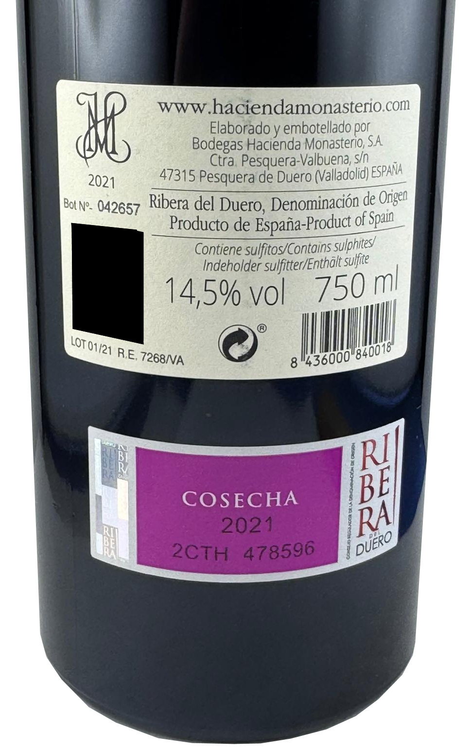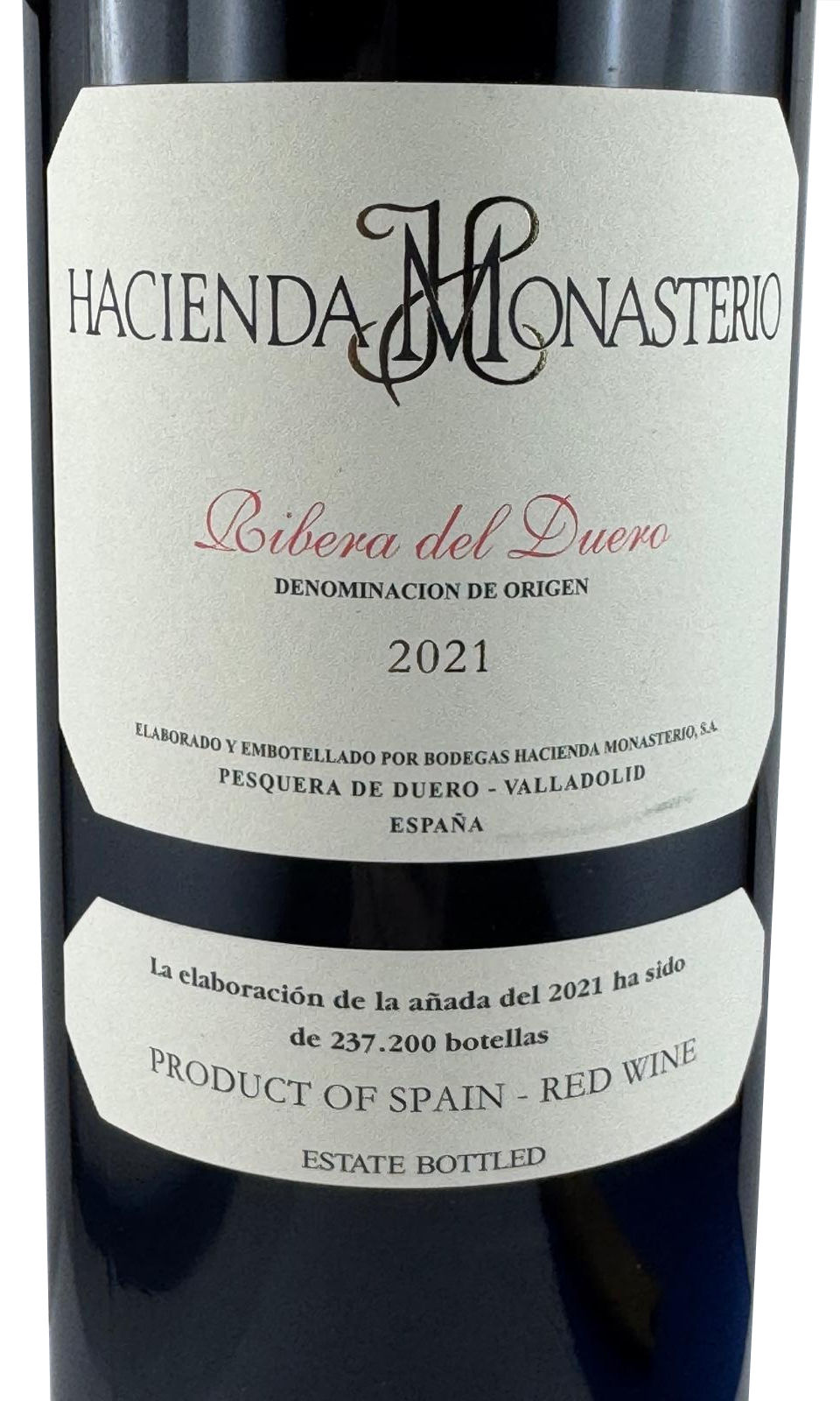 Rotwein Hacienda Monasterio 2021 von der gleichnamigen Bodegas Hacienda Monasterio, aus Pesquera de Duero, im Weingebiet D.O. Ribera del Duero, Spanien.