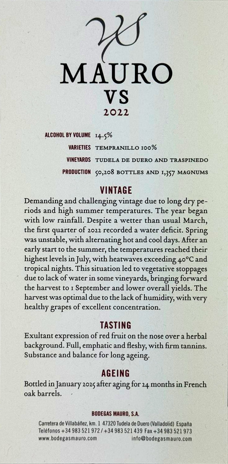 Rotwein Mauro Vendimia Seleccionada 2022, oder kurz Mauro VS 2022, aus der spanischen Weinregion V.T. Castilla y León.