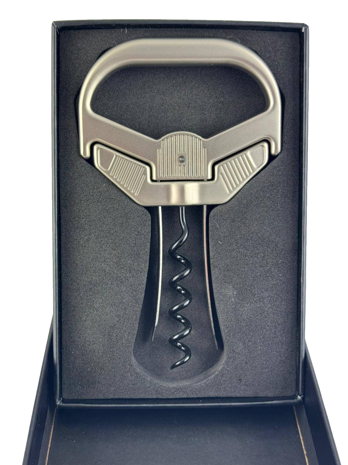 Dies erreicht der Spezial-Korkenzieher durch die Kombination von zwei Techniken, einem Spindel- und einem Federzangenkorkenzieher.
